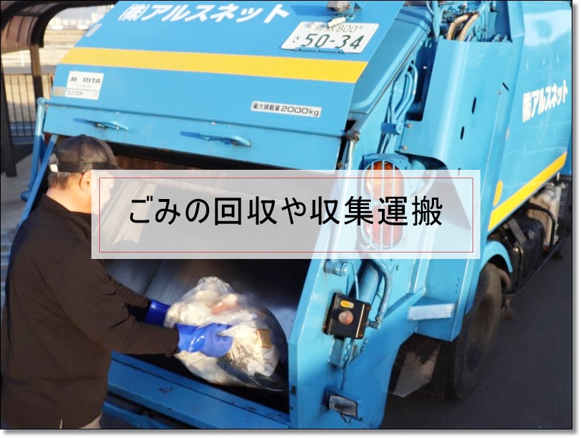 一般廃棄物:ご家庭や事業系一般廃棄物(飲食店、ホテル、オフィス等)から出るごみを安全かつ丁寧に収集し適正な処理施設へ運搬しております。